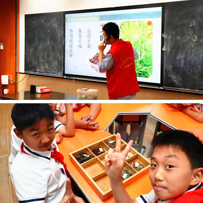 新安医学传承:香囊里的本草智慧。知行楼美术室飘出阵阵药香,五(4)班同学围坐在药材展台前。新安医学研究中心专家手持戥子称量艾叶、苍术,讲解“闻香防疫”的古方原理:“明代新安医家程旈在《医彀》中就记载了香囊避瘟的用法。”学生们分组体验捣药钵研磨,将碎药材装入绣有徽州山水图案的香囊袋。“薄荷要磨成细粉才更香!”同学们边筛药粉边记录药材功效,制作完成的香囊被挂在课桌角,成了兼具实用与美学的“科学教具”。本次活动不仅让学生掌握了传统技艺,更在动手实践中感受新安医学“天人合一”的养生智慧。