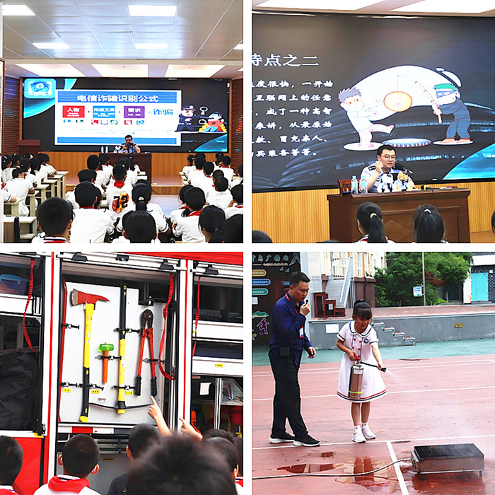 安全知识实训:沉浸式守护成长。安全知识普及板块通过多维度互动筑牢学生安全防线。在校园后操场,消防员身着专业装备,结合校园实际,深入浅出地讲解火灾预防、逃生自救等知识,并展示消防车上的斧头、钳子、发电机等专业设备,直观呈现消防工作的“秘密武器”,引发学生们的浓厚兴趣。