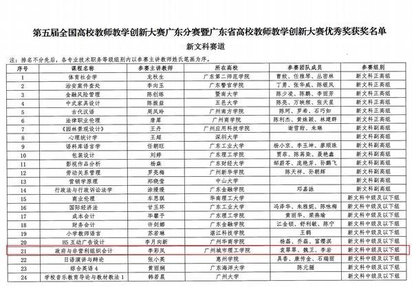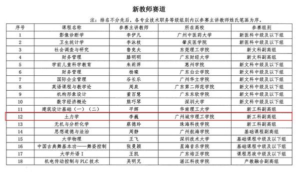 5月26日,第五届全国高校教师教学创新大赛广东分赛暨广东省高校教师教学创新大赛公布获奖名单,广州城市理工学院国际商学院教师龚梦颖勇夺一等奖,创该校历史最佳战绩!电气工程学院教师朱万浩、珠宝学院教师罗甘获三等奖,管理学院教师李彩凤、土木工程学院教师李巍获优秀奖,我校获“优秀组织奖”。