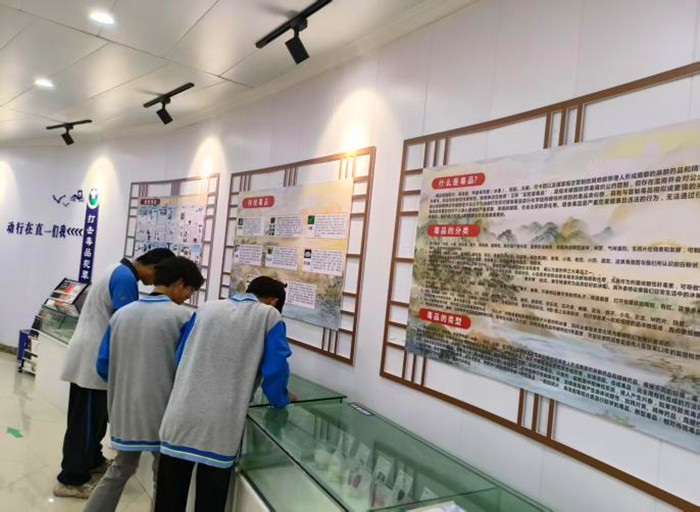 从鸦片战争时期毒品侵蚀中华民族,致使国家积贫积弱、百姓苦不堪言,到现代社会新型毒品伪装成糖果、饮料等,悄然渗透青少年生活,展示区里,一幅幅吸毒者身体溃烂、精神萎靡的图片惨不忍睹,一段段家庭因毒破碎的视频发人深省。同学们神情专注,不时驻足记录,深刻认识到毒品的罪恶本质。