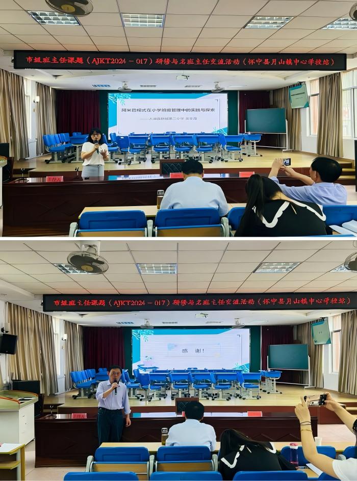 在专题研讨环节,安徽省优秀辅导员、太湖县新城第二小学校长孙实新就市级课题《"五育融合"理念下的小学班级文化建设路径研究》作成果汇报;安庆市名班主任吴冬霞分享《阿米巴模式在小学班级管理中的实践与探索》,为两县教师提供了可资借鉴的创新经验。在互动交流环节,与会教师围绕"五育融合的班级文化建设"等议题展开热烈讨论,碰撞出诸多教育智慧的火花。