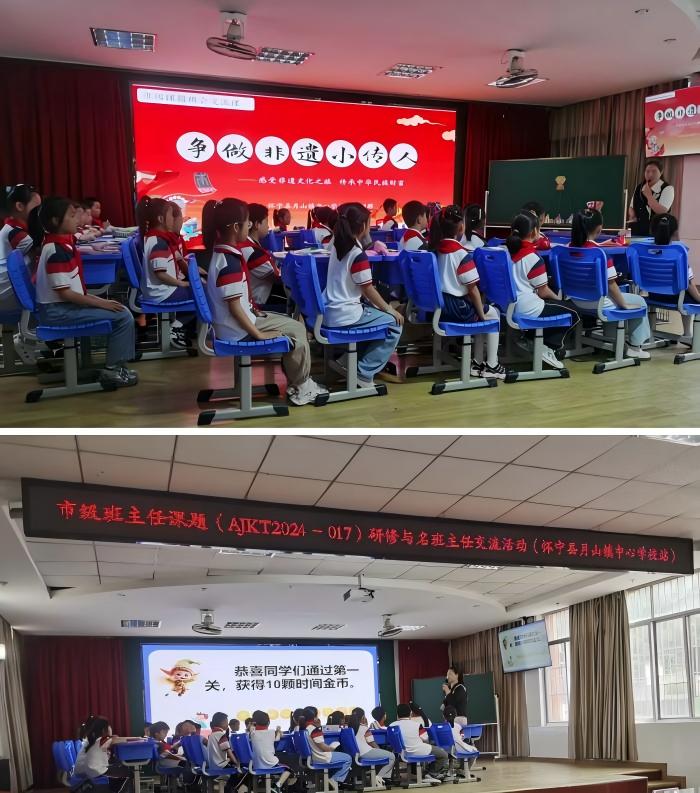 活动以课堂教学展示拉开序幕。怀宁县月山镇中心学校戴刘群老师执教《争做非遗小传人》,通过非遗文化体验、手工实践等教学环节,巧妙地将美育、德育与劳动教育有机融合;太湖县新城第二小学梅婷老师带来《做时间的主人》班会课,运用情景模拟、任务驱动等教学方法,引导学生提升时间管理能力,实现智育与自我管理能力协同发展。两位教师的精品示范课,充分展现了"五育融合"理念在课堂教学中的实践魅力。