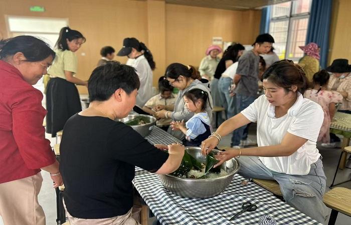 最受期待的亲子游戏环节将活动推向高潮。园内各个角落精心设置了丰富多彩的游戏项目,亲子游戏环节中,“欢乐套圈”区域人气爆棚。家长与孩子手持套圈,屏气凝神瞄准摆放整齐的物品。小小的套圈不仅套住了惊喜,更套住了亲子间的默契与温情;在“艾草香囊DIY”体验区,家长和孩子变身“小小手工艺人”。亲手制作香囊,不仅让孩子了解端午习俗,更让我们重温了儿时的节日记忆。”“趣味投壶”则让大家感受古代游戏的乐趣,家长与孩子一起瞄准目标,体验投中时的喜悦。每一个游戏都充满挑战与趣味,家长和孩子们全身心投入,现场气氛热烈非凡。