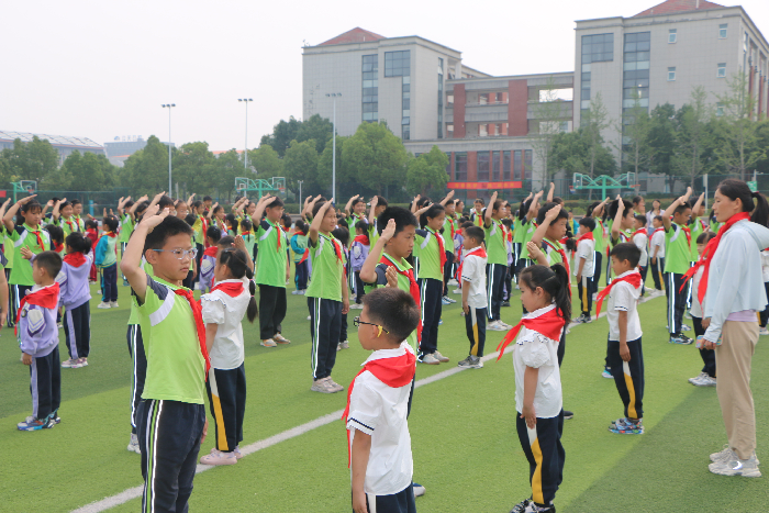 领巾系传承,誓言铸信念。五年级老队员迈着整齐步伐走向新队员,亲手为他们佩戴上鲜艳的红领巾。新老队员互敬队礼,红色基因在无声中赓续。在少先队大队长史金林同学的带领下,全体新队员面向队旗庄严宣誓:“我是中国少年先锋队队员,我在队旗下宣誓……”稚嫩却坚定的誓言响彻云霄,彰显新时代少年的使命担当。