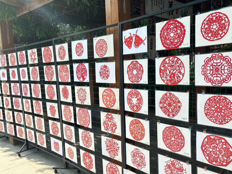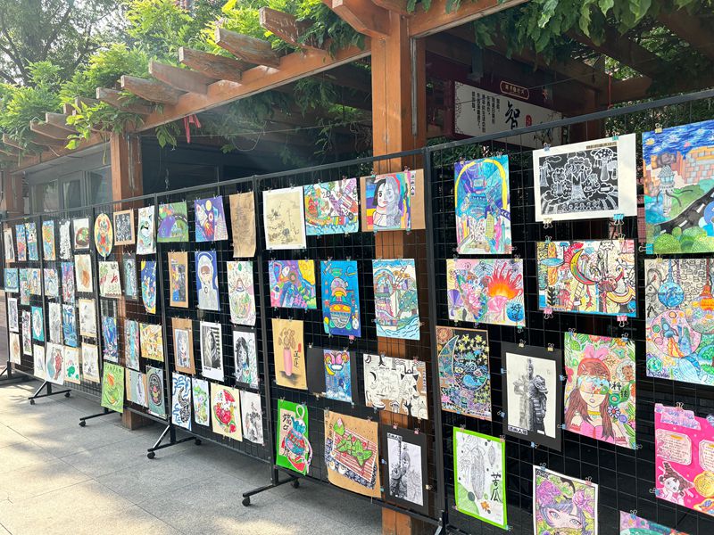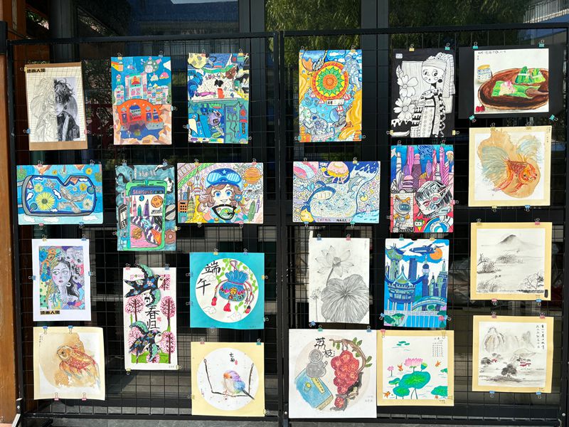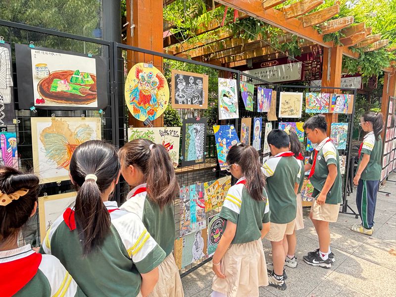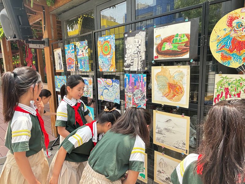 展览现场,学生作品以丰富的题材和灵动的笔触吸引了参观者的目光。一幅幅精美的画作传达出了孩子们对艺术的理解和对生活的热爱。斑斓的色彩、硬朗的线条无不洋溢着节日的欢乐。剪纸作品中精巧的纹路与图案,兼具思想性与艺术性,彰显出非遗文化的魅力。每一幅作品都凝结着学生的创意与努力,展现了学校美术教学的扎实成果。