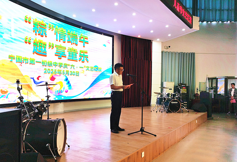 为庆祝一年一度的“六一”国际儿童节, 宁国市第一初中于5月30日上午在学校鹏程报告厅举办了主题为“棕情端午 趣享童年”的六一儿童节庆祝活动。七年级师生、家长代表齐聚一堂,通过丰富多彩的文艺表演、为孩子们打造了一个充满欢笑与温情的节日盛宴。