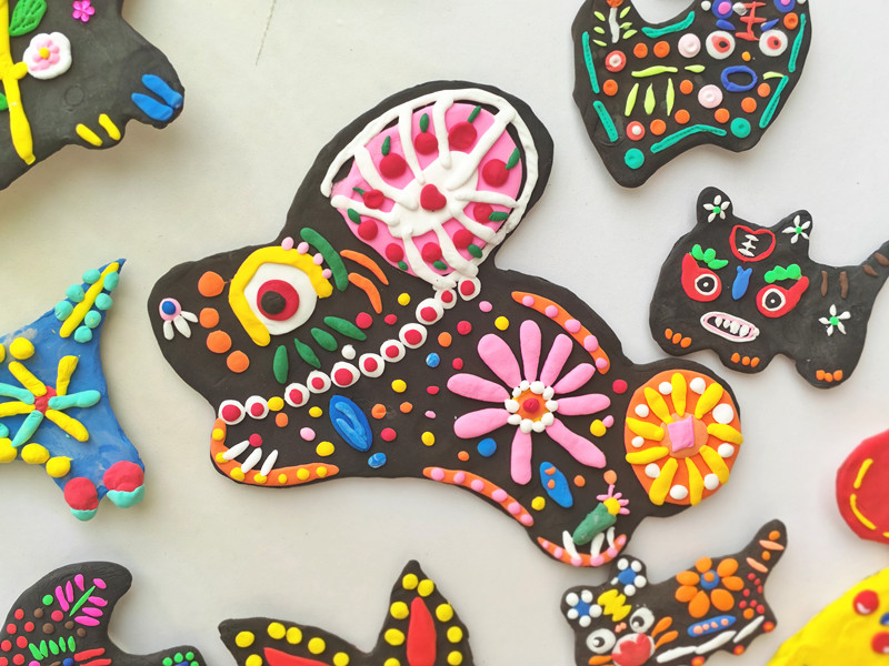 第二板块为低年级学生《“泥”好有趣》非遗手工作品立体展示区。一、二年级的小朋友们用灵巧的双手捏制出栩栩如生的“泥咕咕”手工作品,各种憨态可掬的小动物、生肖形象生动有趣。夸张的造型,多彩的配色,让手工作品熠熠生辉,展现了非遗技艺的独特魅力。