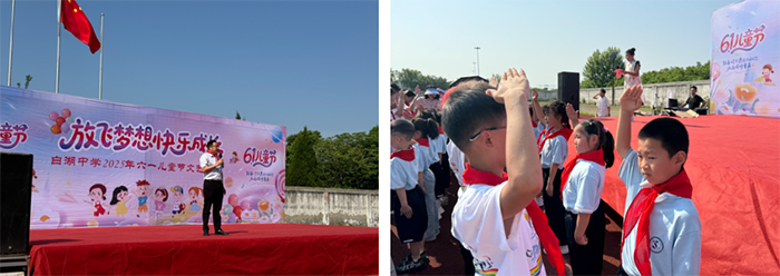 5月30日上午8点,庐江白湖中学在校运动场隆重举行庆六·一系列活动。