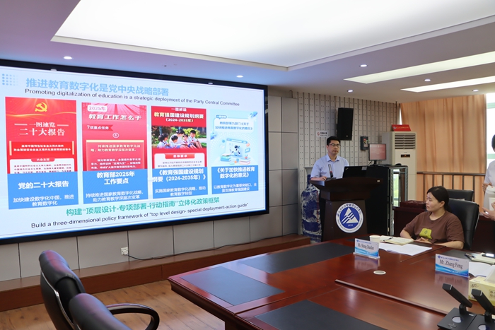 方贤文致辞指出,安徽水利水电职业技术学院与泰国等东南亚地区高校合作基础深厚,希望两校在师资培训、学生交流、科研合作、课程共建等领域深化合作,共同探索职业教育国际化发展新路径。高海洋表示,希望两校携手加强沟通,共绘职业教育国际化新蓝图。方贤文、皇家理工大学托斯蓬•桑萨旺教授分别作《数字化赋能教育高质量发展》等主旨报告。双方围绕短期研学、交换生项目、教师互聘、专业共建、联合实验室等议题展开深入交流。