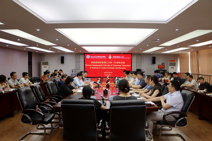 近日,泰国皇家理工大学校长顾问高海洋教授一行来到安徽水利水电职业技术学院访问交流,党委副书记、院长方贤文热情接待高海洋一行并组织召开研讨会,学院有关部门负责人、相关专业骨干教师代表等40余人参加会议。