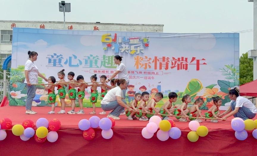 当童真童趣遇上千年粽香,当欢腾六一邂逅诗意端午。为让孩子们在欢乐中浸润传统文化,增进亲子情感纽带,深化家园共育内涵,5月30日下午,怀远县白莲坡镇叶湖幼儿园以“童心童趣,粽情端午”为主题,在绿意盎然的操场上举办了一场别开生面的亲子文化活动。全体幼儿与家长携手共赴这场传统与现代交融的节日之约。