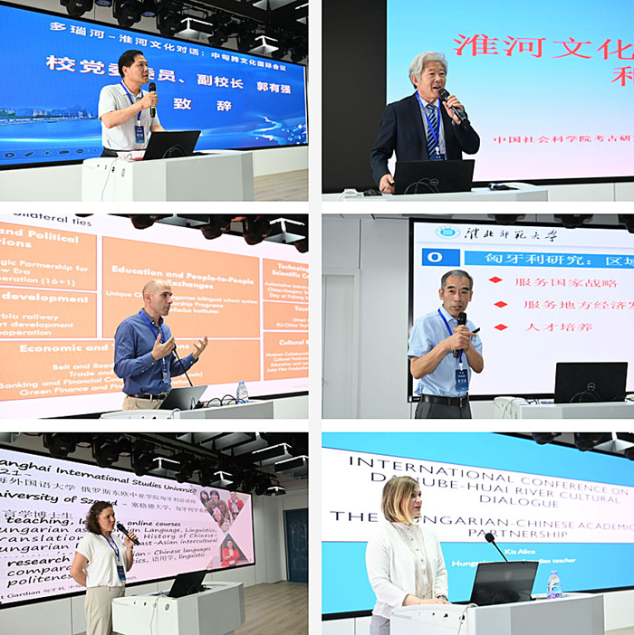 为深化区域国别研究,促进中匈文化交流,由蚌埠学院外国语学院、淮河文化研究中心联合主办的“多瑙河—淮河文化对话:中匈跨文化国际会议”于5月28日在蚌埠学院隆重举行。来自匈牙利及安徽省内外专家学者、蚌埠商务和外事局、博物馆、禹启文化研究协会等单位的领导和研究人员、外国语学院教师及学生代表200余人齐聚一堂,围绕淮河文明溯源、中匈关系发展、跨文化对比研究等议题展开深入研讨。
