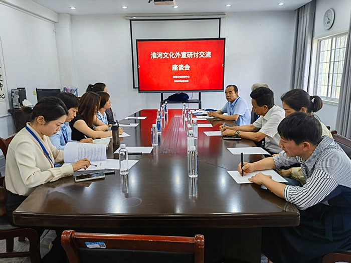 淮河文化外宣研究论坛在蚌埠学院淮河文化研究中心同步开展,蚌埠市商务和外事局、博物馆、禹启文化研究协会等单位的领导和专家与淮河文化研究中心研究人员和外国语学院科研团队成员围绕徽文化、淮河文化研究、翻译、传播等展开讨论,共同探讨讲好淮河文化故事的新途径。