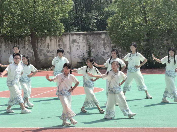 在比赛过程中,低年级的同学们虽然年纪小,但他们认真专注的态度令人称赞。他们用稚嫩的小手模仿着书法的起笔、行笔、收笔动作,一招一式都充满了童趣,展现出对书法艺术的好奇与向往。而高年级的同学们则动作更加娴熟流畅,他们的书法操不仅动作规范,还融入了自己对书法内涵的理解,通过舒展的身姿和有力的动作,将书法的韵味展现得淋漓尽致。