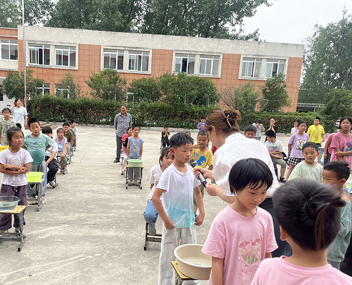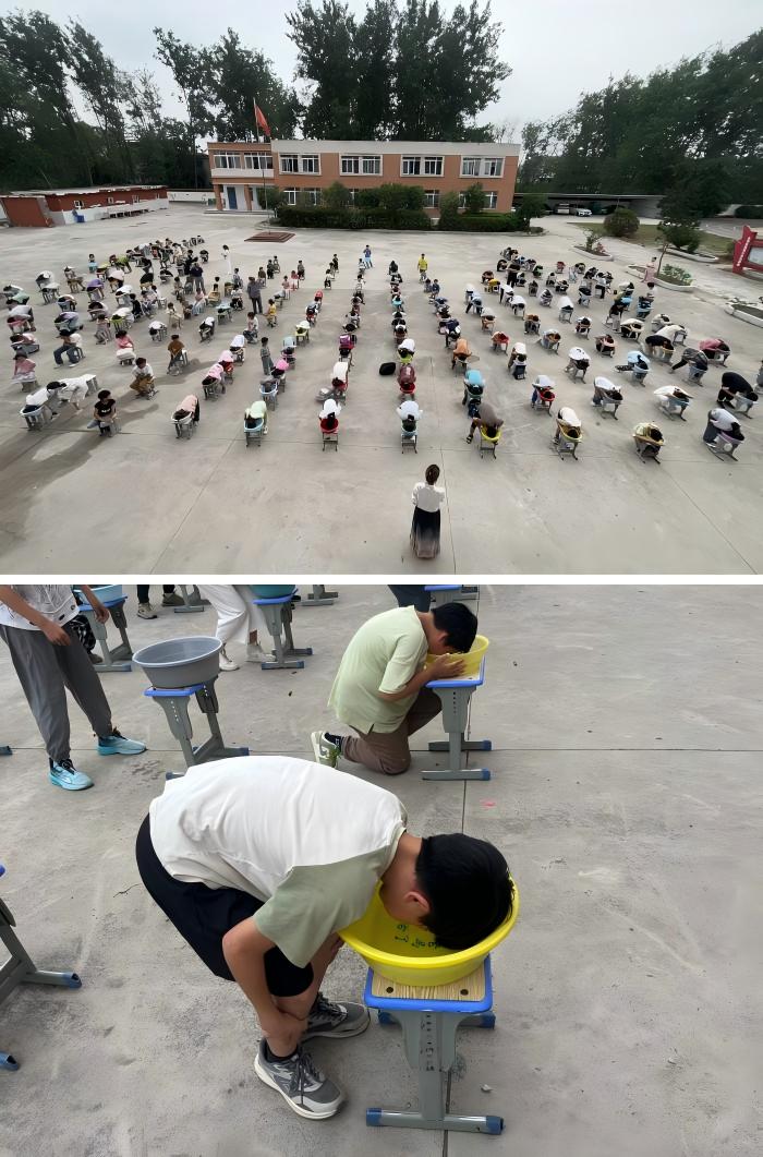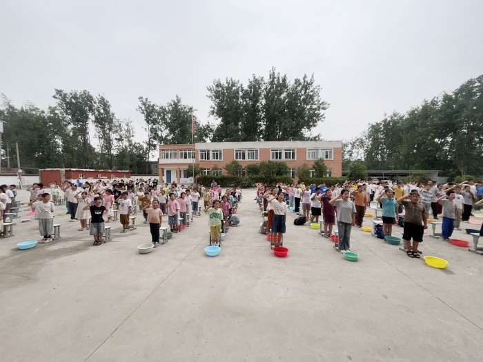随后,在班主任的引导下,各班学生有序取出从家中带来的小盆,注入清水后整齐围坐。胡校长亲自示范模拟溺水体验,通过屏住呼吸让大家感受短暂的窒息感,并郑重告诫:“真实的溺水痛苦程度远超于此。”