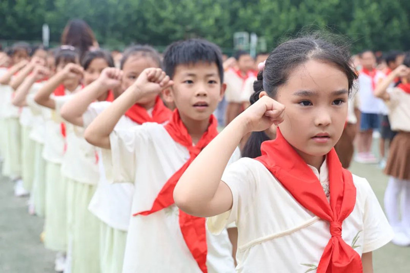 鲜艳的红领巾在胸前飘扬,红色的种子在心底生根。相信在星星火炬的指引下,新队员们必将肩负光荣使命,传承红色基因,争做强国少年。(图文/合肥市琥珀名城小学)