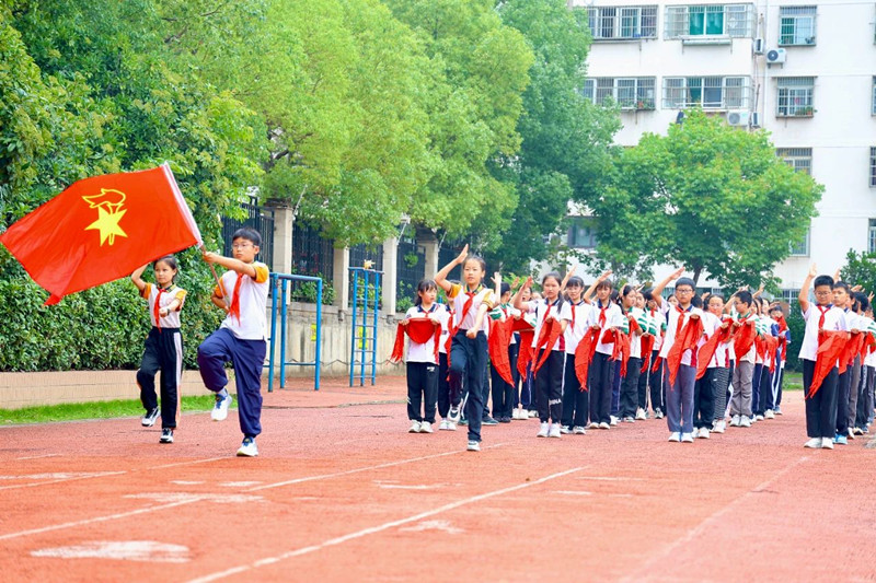 为增强少先队员的光荣感和组织归属感,争做强国少年。合肥市琥珀名城小学于6月9日隆重举行少先队入队仪式。453名新队员光荣加入中国少年先锋队。