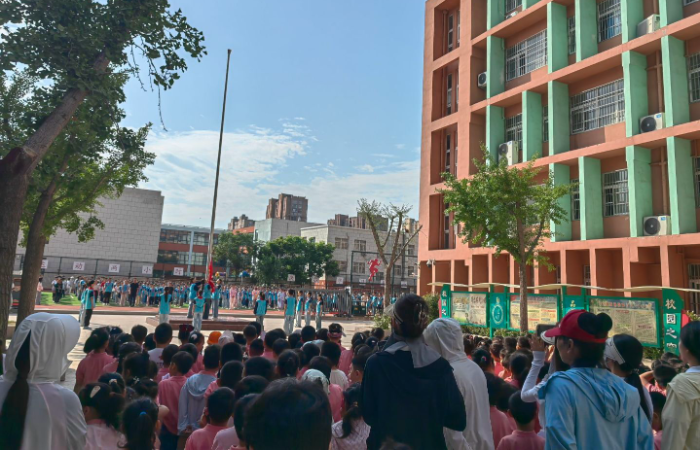 当日,怀远县第二实验小学领导在西门迎接师生。激昂的国歌声中,孩子们首次在小学操场参加升旗仪式,整齐的队列和庄严的氛围让他们不自觉挺直身姿,目睹高年级学生规范升旗后,纷纷感叹“哥哥姐姐校服真整齐”。随后6个大班幼儿分组步入一年级教室,开启课堂体验。