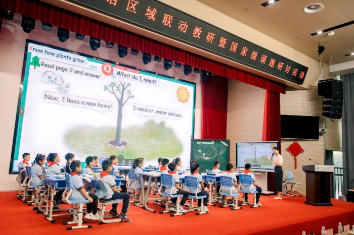 在课例展示环节,工作室成员、肥西县柿树岗乡中心学校徐晓晓执教新版人教三(上)Unit 4 Plants around us Part C Reading time,融入跨学科理念及AR技术,引导学生在探索植物生长奥秘的过程中,感悟植物与人类和谐共生的关系,发展学生英语语言能力的同时注重培育学生的文化意识。