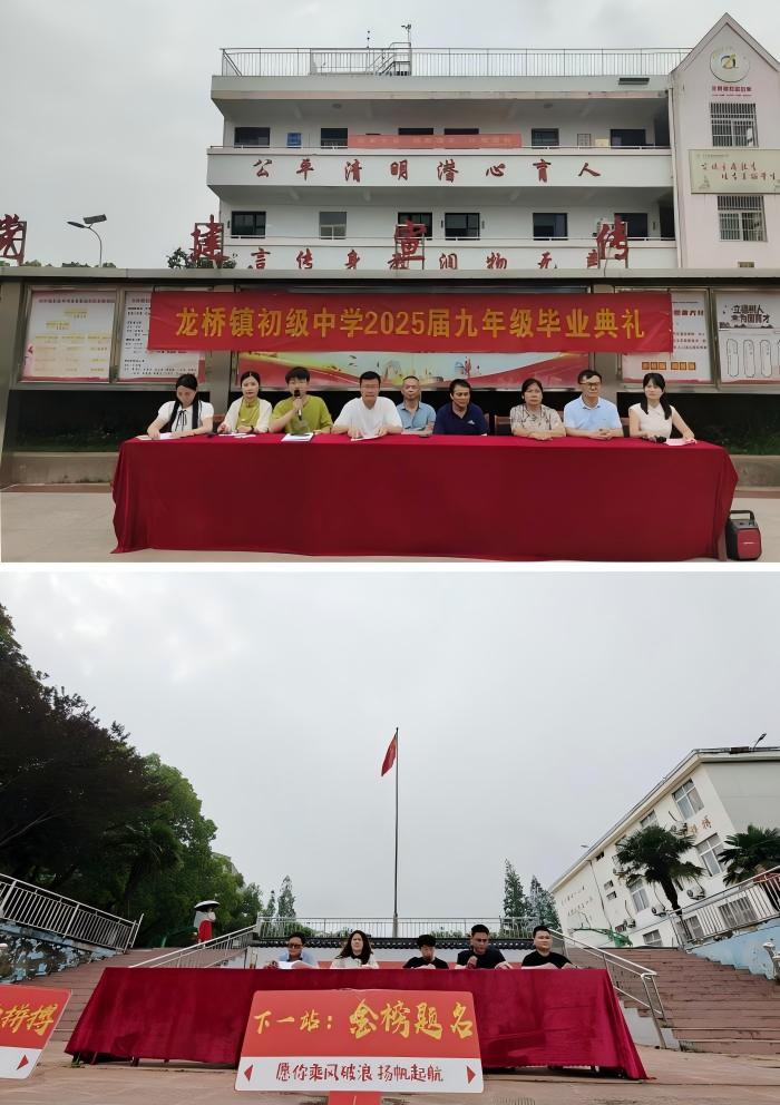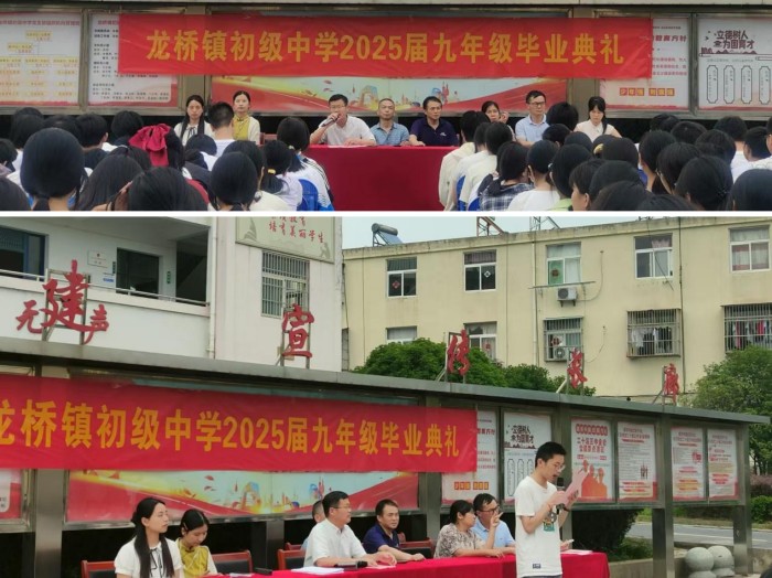 2025年6月11日,庐江县龙桥镇初级中学、黄屯初级中学在学校运动场举行2025届学生毕业典礼。本次典礼以“圆梦2025·扬帆远航”为主题,九年级全体毕业生、班主任、教师代表及校委会成员共同参与了这场青春的盛典。