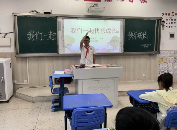 晨队会伊始,各中队辅导员首先带领队员们回顾了“团结友爱”主题活动的点滴收获,并自然引出“快乐成长”离不开伙伴同行、集体互助的理念。在轻松的氛围中,队员们纷纷走上台前,分享自己亲身经历的“合作故事”,真实、生动的故事,让队员们深刻体会到合作带来的成就感和快乐。