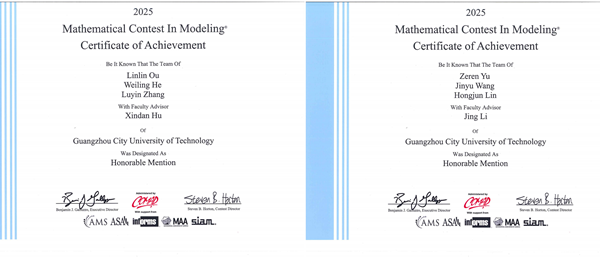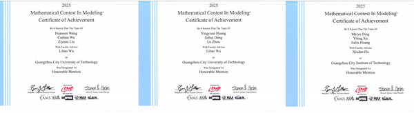 广州城市理工学院学子在2025年美国大学生数学建模竞赛中荣获国际二等奖5项