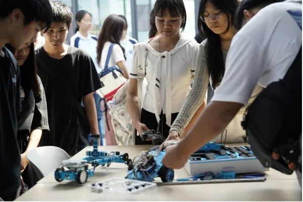 学校师生代表带领大家分别参观了学校校史馆、体育场、创客中心、美育空间等地,泛黄的老照片、珍贵的荣誉证书、特色课程的展示墙……精心规划的路线不仅串联起学校的历史底蕴与现代活力,也让泰国学子在探访讲解中深度感受了学校的校园美景与校园文化。双方师生也在游览过程中,迅速消融了陌生感,交流得更加亲切而深入。