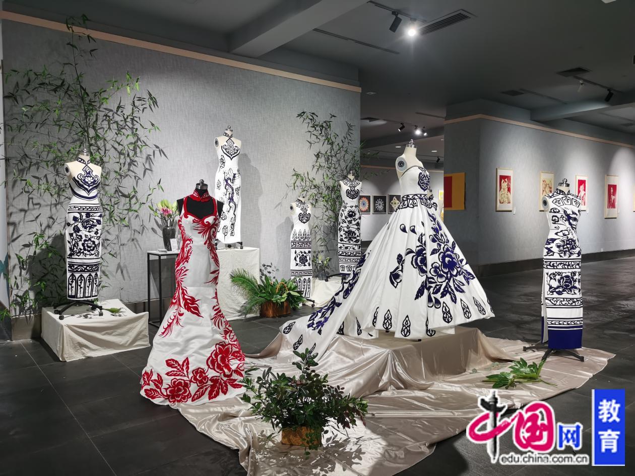 2024年,在元青花传统纹样收集完成后,师生们又宛如充满创意的魔法师,把六艺梅瓶的图案通过非遗剪纸的奇妙技艺,巧妙地设计在旗袍之上,成品在江西省文化馆展览、展演,获得广泛好评。这一举措,犹如在传统与现代的舞台上,架起了一座绚丽多彩的桥梁。
