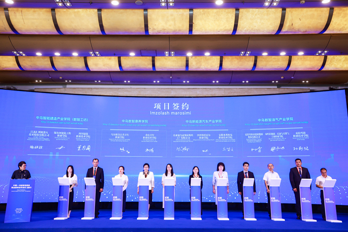 开幕式上,“中乌工坊”项目培育单位名单发布,安徽水利水电职业技术学院成功入选首批“中乌工坊”项目培育单位。方贤文代表安徽水利水电职业技术学院与比亚迪乌兹别克斯坦工厂有限公司人力资源总监尼禄法·佩尔梅托娃、乌兹别克斯坦沙伊洪托胡尔职业学院院长古尔诺拉·尤苏波娃签订三方协议,共同见证“中乌新能源汽车产业学院”项目正式开启。