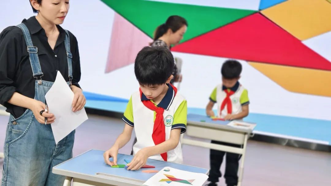 在寒假期间,一、二年级的孩子们就利用七巧板在家进行创意拼搭。他们独自钻研,挑战高难度的图案,积极探索七巧板的神秘世界。比赛现场,小选手们在七巧板的奇幻世界里展开了一场速度与智慧的较量。他们沉着冷静,或快速调整板块位置,或仔细比对图形轮廓,展现出良好的逻辑思维和空间感知能力。