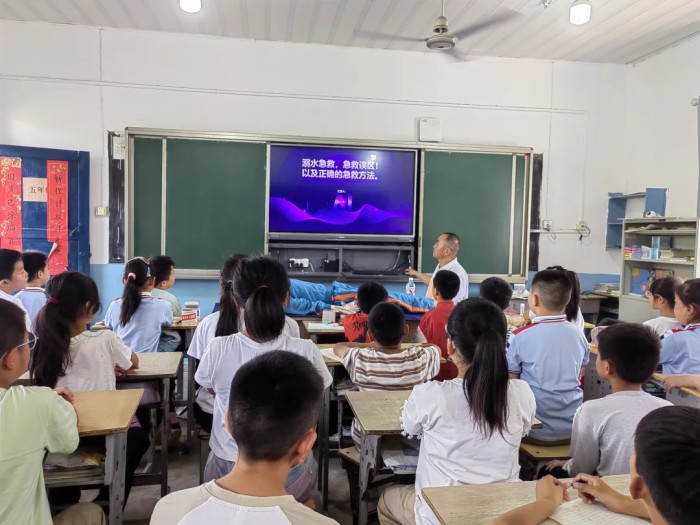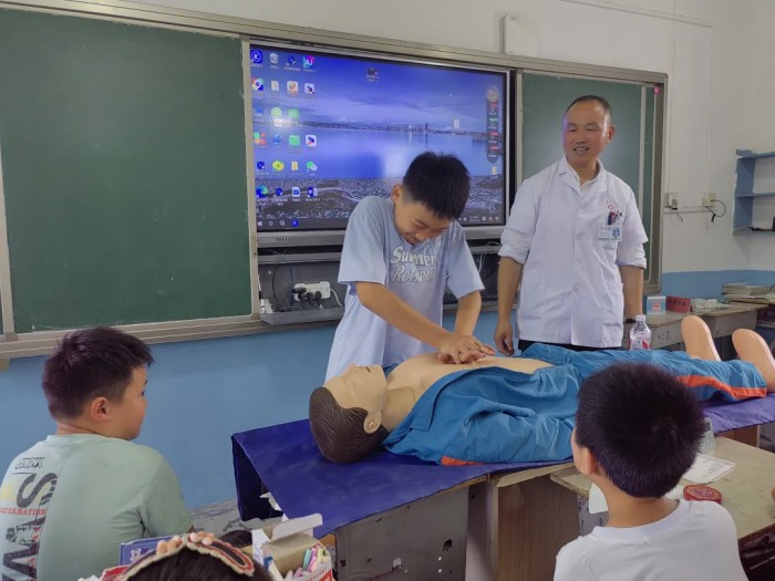 6月16日,望江县第二人民医院曹宏宾主任一行走进麦元双河小学,开展了一场防溺水安全教育暨急救技能培训。