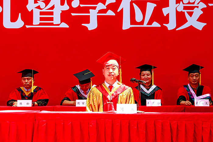 校领导、学位评定委员会成员为获得学士学位的毕业生代表扶正流苏、颁发学位证书。校领导为2025年入选选调生、西部计划的学生赠送出征行囊。