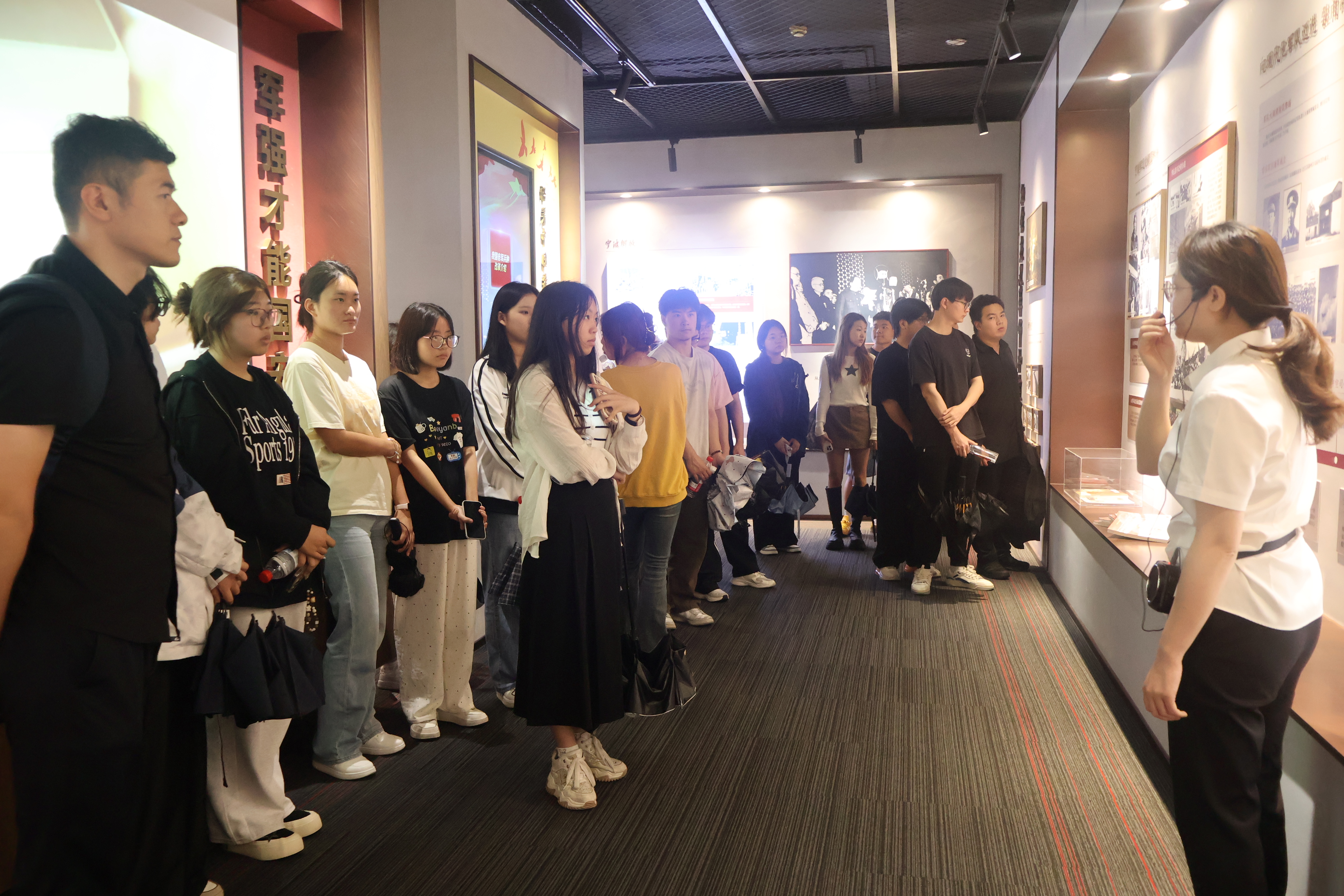 在军休老年大学“大思政课”实践教学基地,师生们通过讲解员的详细介绍和丰富多样的展陈资料,系统了解党领导下宁波的党史、军史与退役军人发展脉络。大家在一件件展品前驻足停留,重温革命先烈的英雄事迹,切实感悟先辈们不怕牺牲、敢于斗争、善于斗争的精神。