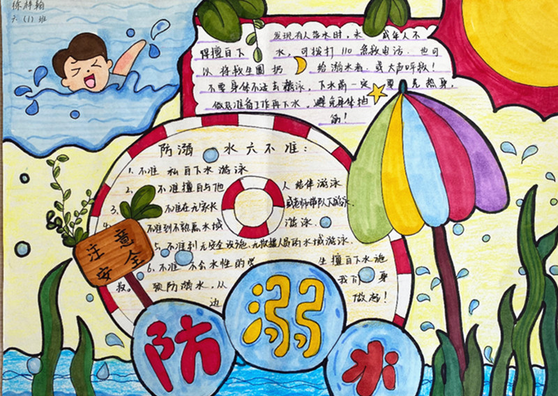 创意宣传:营造浓厚氛围。为营造“人人讲安全、人人重安全”的良好氛围,学校向学生发放自制的防溺水宣传册,各班在每天晨读开始时会由教师或学生领诵防溺水“六不两会”;学校还开展了防溺水手抄报和黑板报评比活动。学生们充分发挥想象力和创造力,用五彩斑斓的画笔绘制出一幅幅主题鲜明、内容丰富的手抄报,生动展现了溺水的危害和防溺水的重要性。各班的黑板报也焕然一新,通过文字、图片、漫画等多种形式,宣传防溺水知识,成为校园里一道亮丽的安全宣传风景线。