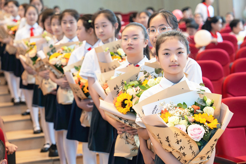 典礼在温馨庄重的氛围中拉开序幕。六年级全体学生身着整洁的校服有序入场,学生代表手持鲜花,向六年级任课教师献花致谢。一束束鲜花传递着学生对师长的敬意与感恩。