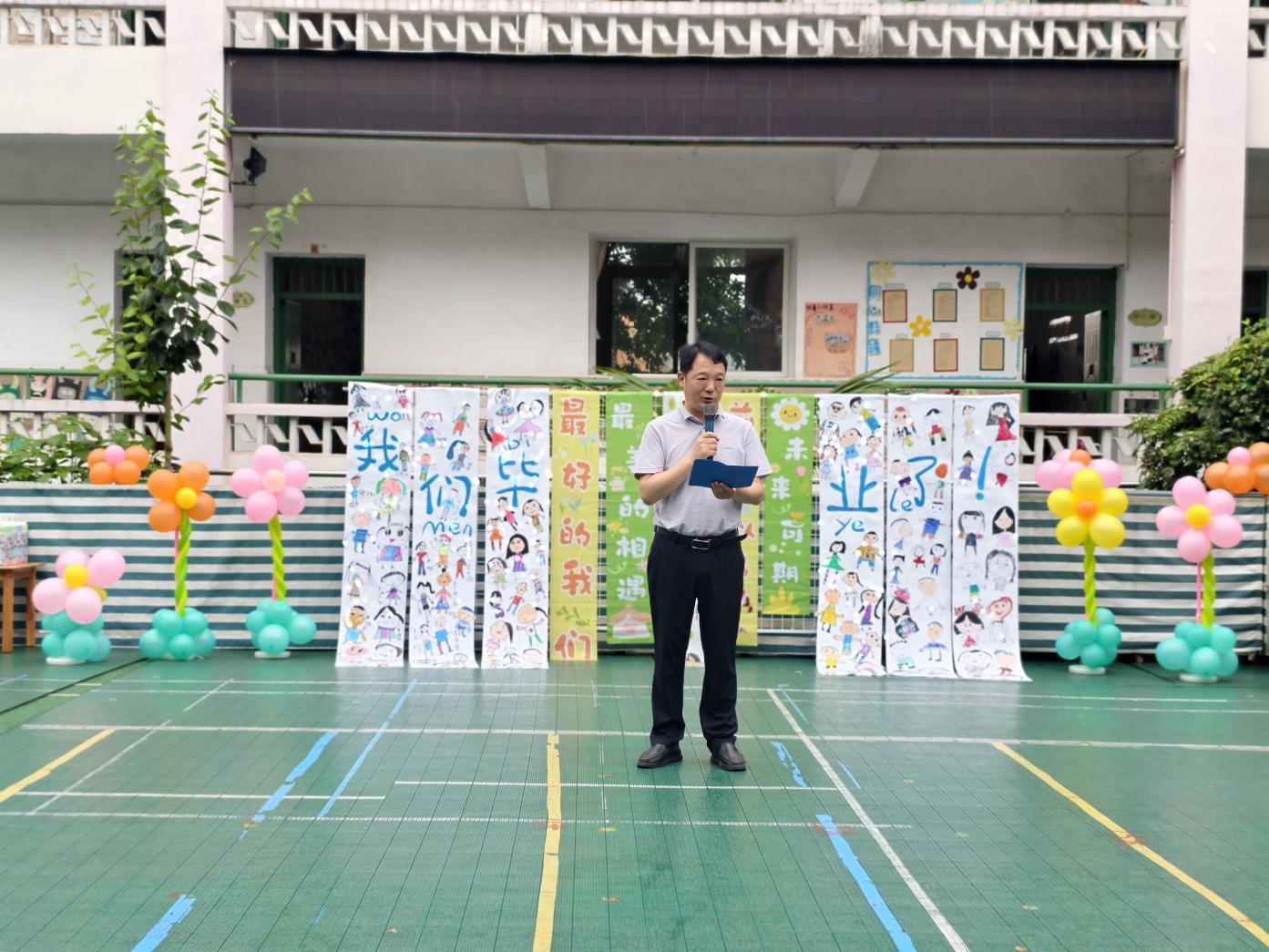 典礼在诗意中启幕。何应玲副园长深情回望孩子们从懵懂到自信的蜕变足迹,寄语他们“永葆好奇,带着勇气和善良奔赴星辰大海”。