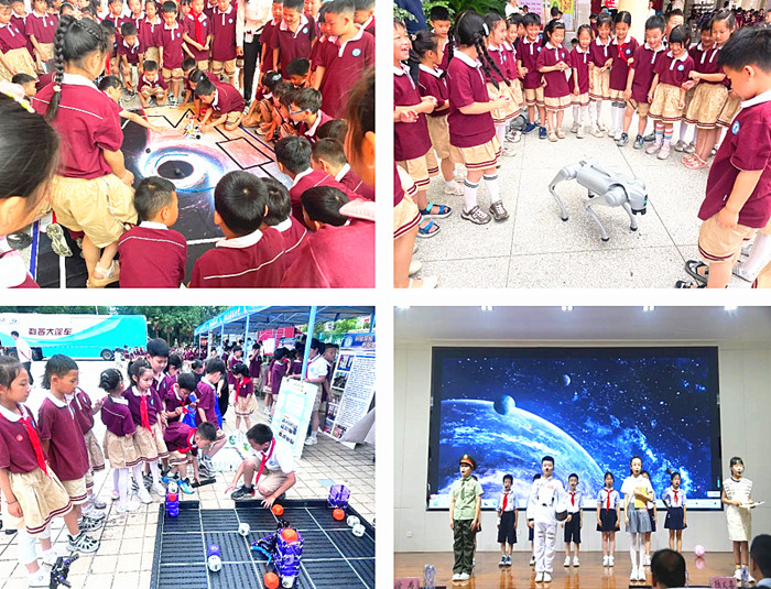 看,这是机器人竞技赛现场。孩子们熟练地操控着手里的机器人,这项活动旨在通过数智技术的应用,激发孩子们的科技创新能力和团队协作精神。机器人竞技结合编程、路径设计,孩子们在充满趣味与挑战的竞技中锻炼了逻辑思维、动手能力和解决问题的能力。