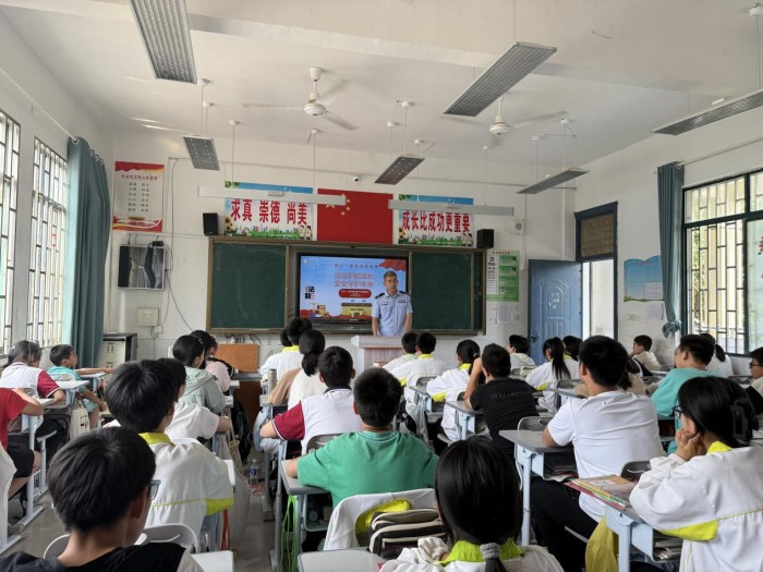 为切实增强青少年法治观念与安全防范意识,6月24日,庐江县龙桥镇初级中学法治副校长夏云桃副所长走进校园,黄屯初中法制副校长张超所长开展以“法治护航成长,安全守护未来”为主题的法治安全教育活动,为师生们带来一堂生动且实用的安全法治课。