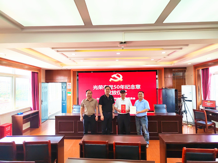 6月24日,全椒县襄河中学党总支在党员活动室举行“光荣在党50年纪念章”颁发仪式。