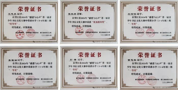 活动结束后,学校共收到参赛作品45份。经过严格筛选,学校择优推荐上报。最终,望江县华阳中心学校9名学生凭借出色的写作脱颖而出,分别荣获特等奖、一、二、三等奖。张桃林老师获优秀指导奖。