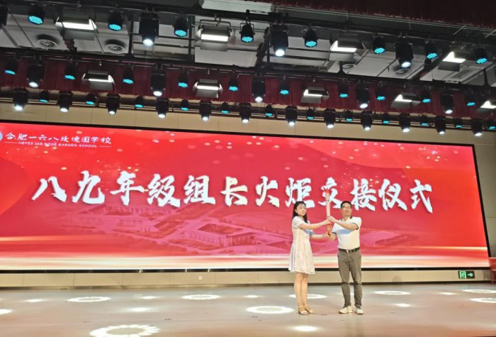 八年级、九年级的火炬交接仪式象征着责任与希望的传递,九年级组长刘茜茜与毕业生代表将象征玫瑰园精神与希望的火炬传递给八年级组长丁高峰,祝愿八年级在接下来的一年中挥洒拼搏的汗水,继续书写玫瑰园的辉煌。