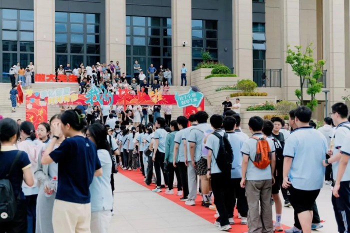 合肥一六八中学党委委员、副校长,合肥一六八玫瑰园学校教育集团党总支书记、校长陈忠好,合肥一六八玫瑰园学校副校长耿杨,校长助理宫乐、唐礼芳、颜德森、舒会丽,以及小学班主任代表、九年级全体老师和家长代表,共同见证五百余名玫瑰学子顺利完成学业,开启人生新征程的重要时刻。