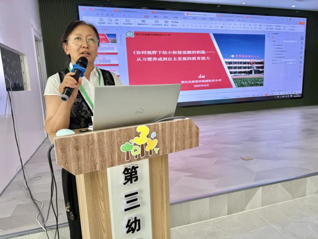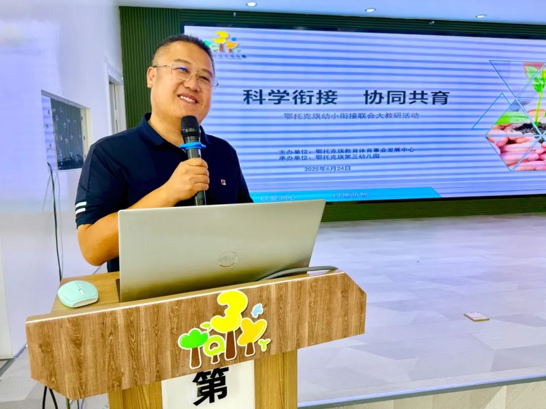 为深入贯彻教育部幼小衔接政策精神,探索幼儿园与小学语言教育的科学衔接路径,2025年6月24日上午,由鄂托克旗教育体育事业发展中心主办的“科学衔接 协同共育”幼小衔接联合大教研活动在我园举办。