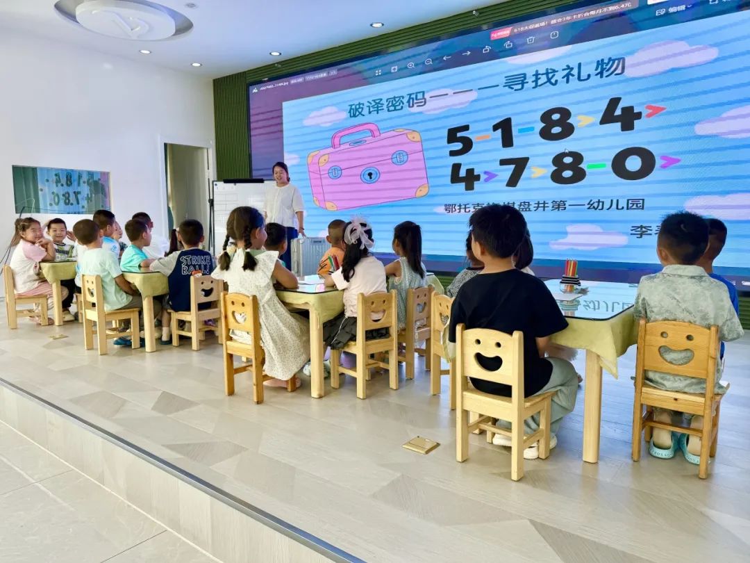 鄂托克旗棋盘井第一幼儿园李春梅老师执教了大班数学活动。活动巧妙链接幼儿游戏经验,围绕“破译密码”展开,旨在引导大班幼儿运用图画、符号、数字进行创意表征,体验数字不同的组合和排列。