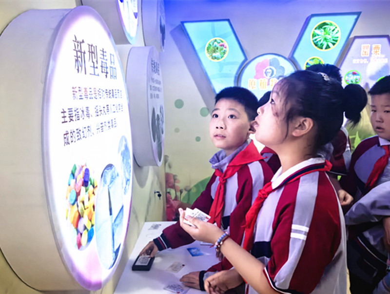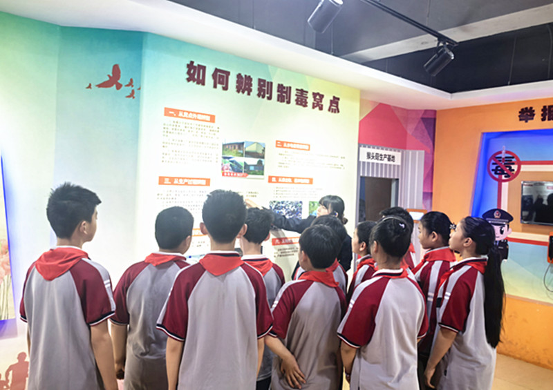活动中,少先队员们在警察叔叔、禁毒社工的引导下,依次参观了“万毒之源”“毒品之害”“防毒之技”等主题展厅。展厅内,仿真毒品模型整齐陈列,图文展板内容详实、画面震撼,一幅幅触目惊心的数据图表、一个个因毒品而破碎的家庭案例,从多角度揭开了毒品的真实面目,直观呈现了毒品对个人健康、家庭幸福和社会稳定的严重危害,给孩子们直观的感受。