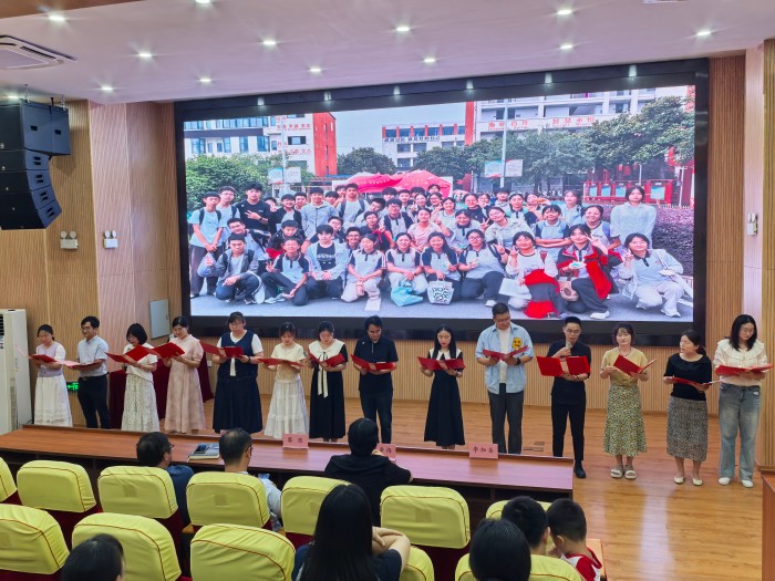 语文组以诗意语言送别远行,强调“路,从荆棘与荒芜中开辟”,踏上征途莫忘起点。赞扬学子如“蒲公英”般远行的精神,引用“路漫漫其修远兮”,勉励锲而不舍终抵彼岸。倡导于“淡泊宁静中求学求知”,方能行稳致远。典礼尾声,全体教师深情合诵,将祝福推向高潮。