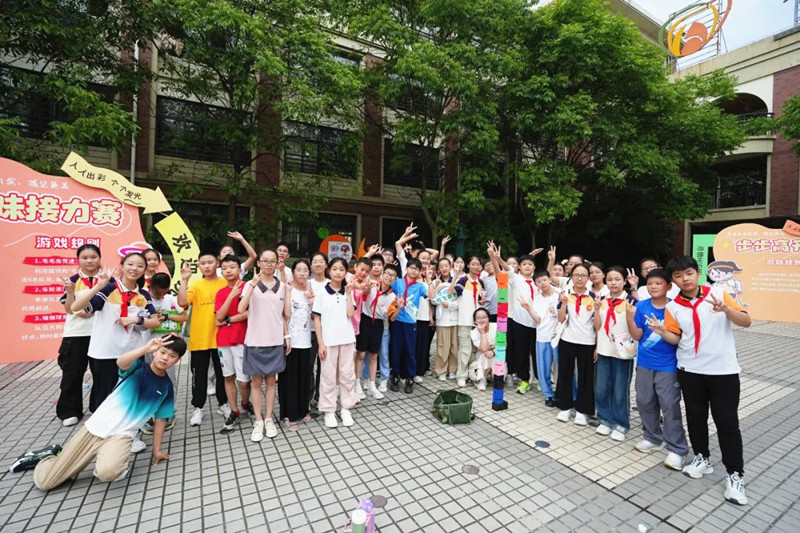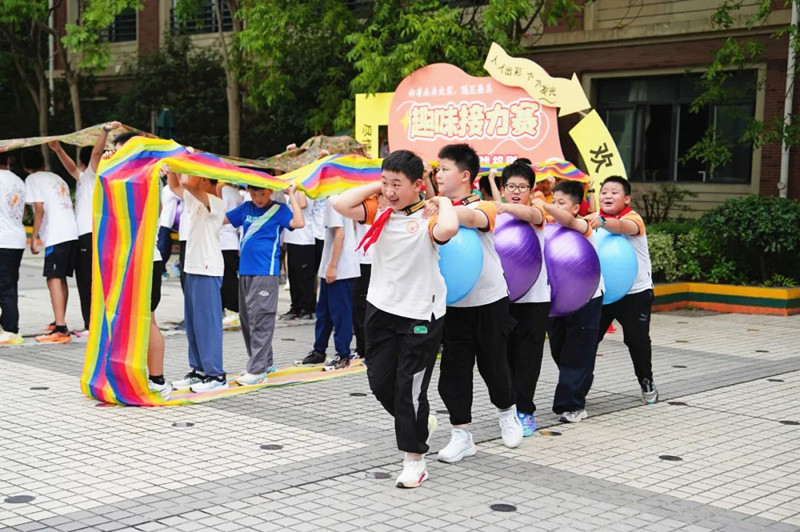 启航的号角已然吹响,欢乐的能量即将释放。同学们在“欢乐集结号”中快乐出发,操场瞬间变成欢乐的海洋。飞盘挑战赛——精彩纷呈:从击落“飞盘九宫格”,到精准击倒“飞盘保龄球”,再到远距离“飞盘投篮”,同学们身手矫健,在速度与技巧的比拼中尽展活力。趣味接力赛——点燃激情:各队在“毛毛虫竞速”中协力追赶,于“车轮滚滚”里默契前行,再合力控制瑜伽球冲刺终点,加油声、欢笑声此起彼伏。步步高升——团结协作:队员们手拉绳索,屏息凝神,小心翼翼地将方块依次垒高,每一次成功的堆叠都引来热烈欢呼。同学们默契配合、奋勇争先,在欢声笑语中重温深厚情谊。