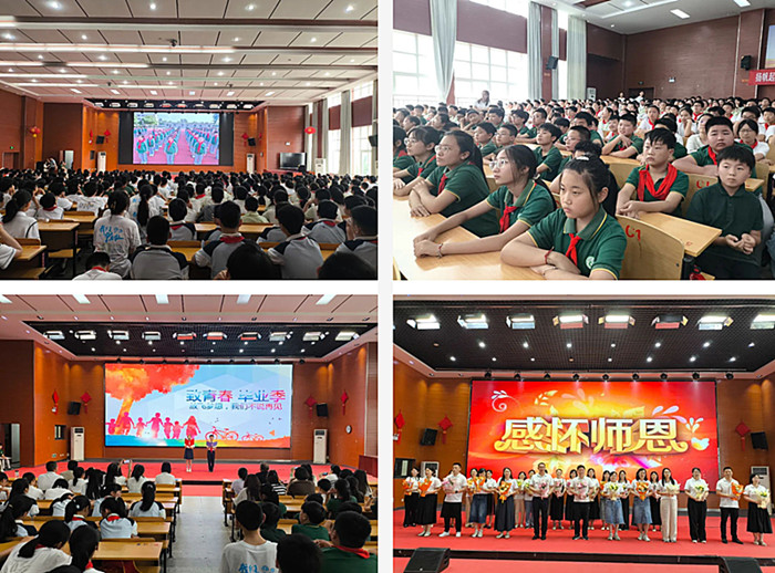 感人的献花仪式将感恩之情推向高潮。学生代表手捧芬芳的鲜花,献给为他们辛勤付出的六年级任课老师。在主持人的带领下,全体毕业生起立,向恩师和母校深深三鞠躬:“一鞠躬:感谢老师谆谆教诲!再鞠躬:感谢母校悉心培养!三鞠躬:祝福老师桃李芬芳!祝福母校再创辉煌!”这一刻,浓浓的师生情谊弥漫全场,不少老师和学生眼中闪烁着感动的泪光。教师代表的深情寄语,饱含着不舍与期望,字字句句都是爱的叮咛,为孩子们送上最温暖的毕业祝福。