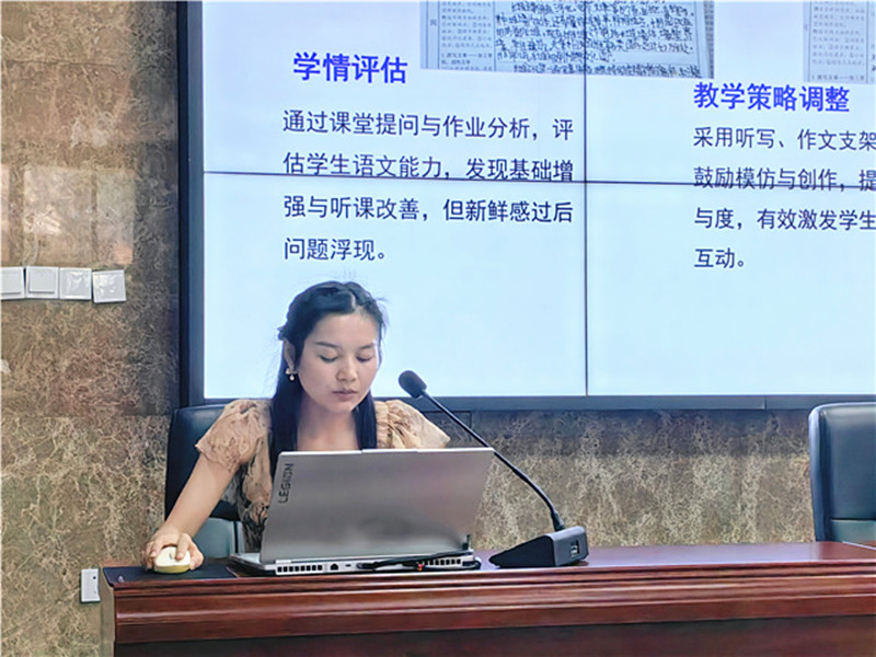 首先全体教师齐聚一堂,共同聆听骨干教师赵星星和赵娟娟带来的教育教学心得分享。赵星星老师对学生的学情进行评估,针对教学实践过程中学生暴露出的问题,再对教学策略进行调整,根据学生学习实况采取一些小妙招,激发学生学习的兴趣和互动性。赵娟娟老师以“教学有法、教无定法、贵在得法。”为主题进行分享,从上课到作业再到批改,从习惯到基础再到细节,将每一件平凡的小事都用心做、坚持做,为学生的后续发展筑牢了地基。