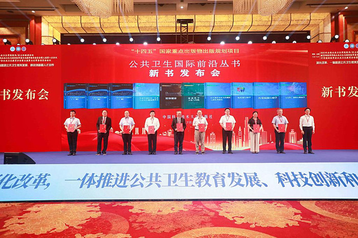 开幕式上,举行了“十四五”国家重点出版物出版规划项目公共卫生国际前沿丛书《牛津全球公共卫生教科书》发布会。与会人员观看了丛书介绍视频,翁建平作为丛书主译代表阐述了丛书翻译的基本情况和出版的重大意义,中国科学技术大学出版社党工委常务副书记、党总支书记蒋家杰为丛书主译颁发证书。